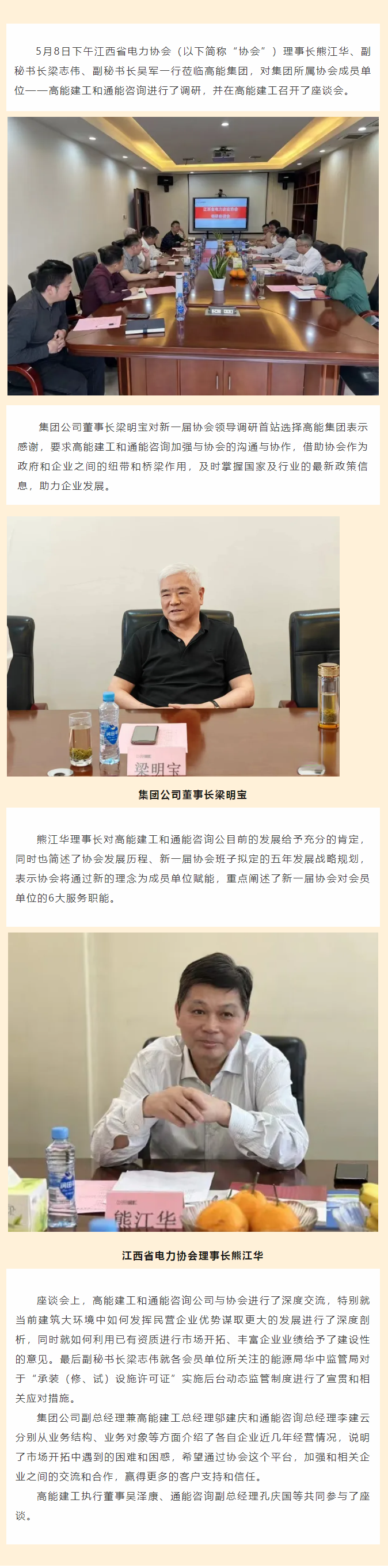江西省電力協(xié)會熊江華理事長一行蒞臨高能建工、通能咨詢調研座談